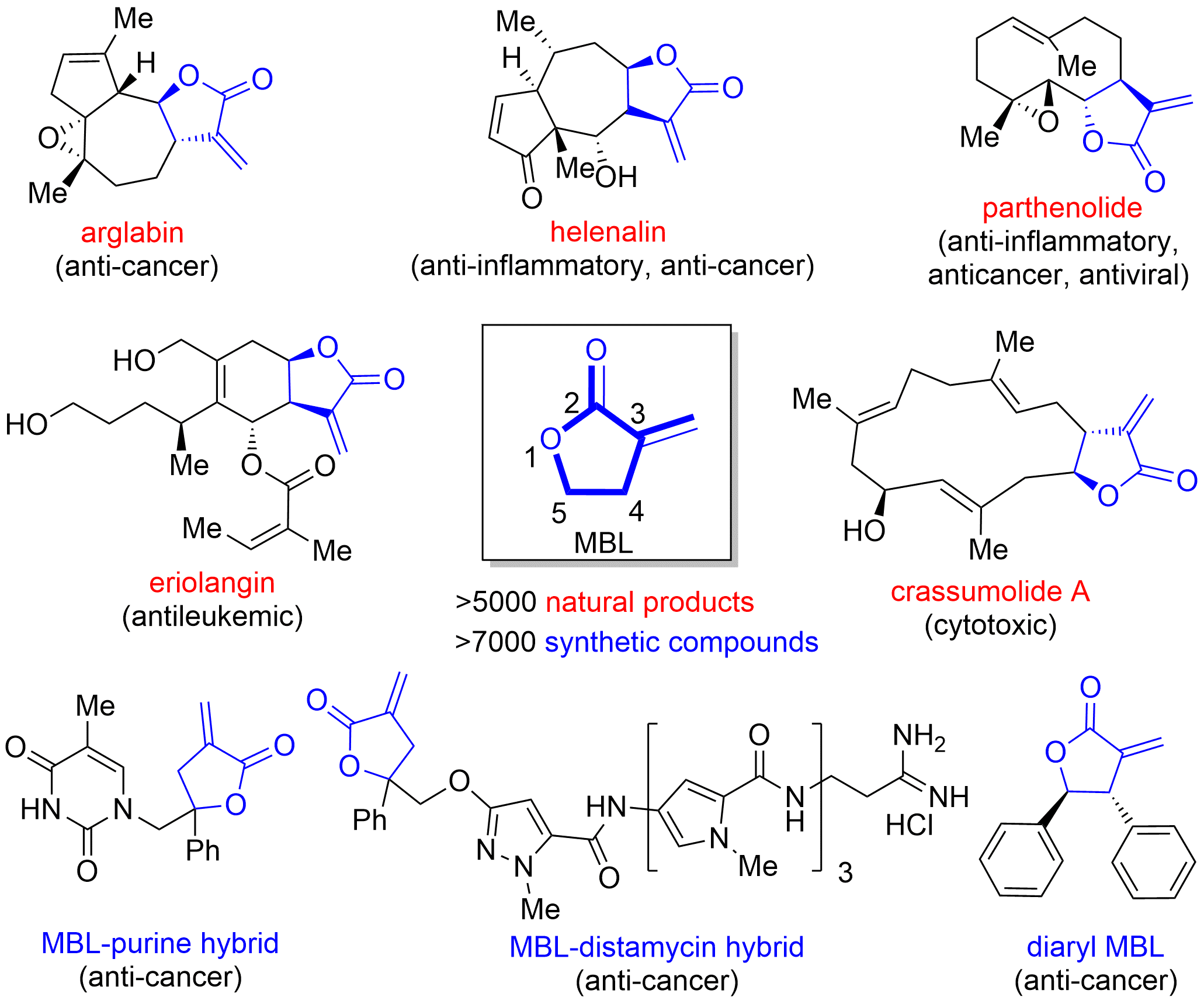 圖1.含有α-亞甲基-g-丁內(nèi)酯結(jié)構(gòu)單元的一些重要天然產(chǎn)物和活性分子