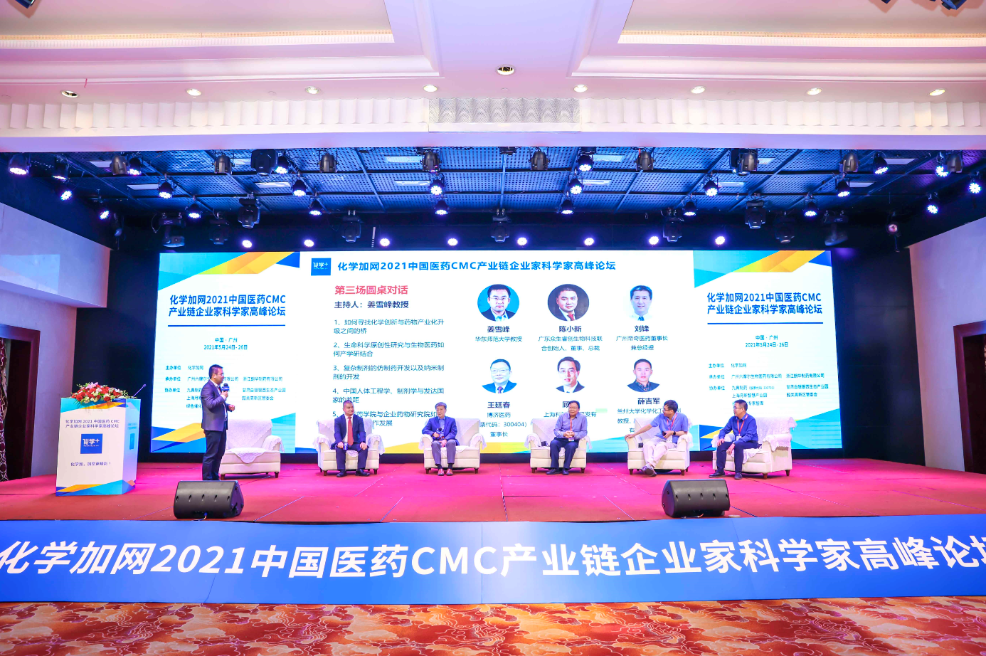 5月24-26日,化學加網(wǎng) 2021 中國醫(yī)藥 CMC 產(chǎn)業(yè)鏈技術交流暨企業(yè)家科學家高峰論壇在廣州陽光酒店順利舉行。中國科學院院士陳凱先、中國工程院院士陳芬兒、中國科學院院士馬大為、廣東省科學技術廳二級巡視員周木堂、廣州市黃埔區(qū)科技局/開發(fā)區(qū)科技創(chuàng)新局副局長吳云、南方科技大學坪山生物醫(yī)藥研究院院長張緒穆教授、暨南大學藥學院院長丁克教授、華東師范大學姜雪峰教授、浙江朗華制藥總裁馬建國博士、九典制藥鄭霞輝總經(jīng)理、軟銀(中國)控股總裁姚志東博士等眾多來自“政、產(chǎn)、學、研、用、金融”領域的大咖匯聚一堂,共話中國制藥產(chǎn)業(yè)發(fā)展新態(tài)勢。本次峰會為期三天,前兩天設四個分會場,著重產(chǎn)業(yè)技術交流,第三天設產(chǎn)業(yè)領軍人物專題分享及企業(yè)家科學家圓桌對話高峰論壇。峰會議程點擊查看:http://www.konkatsu.cc/activityDetail/109