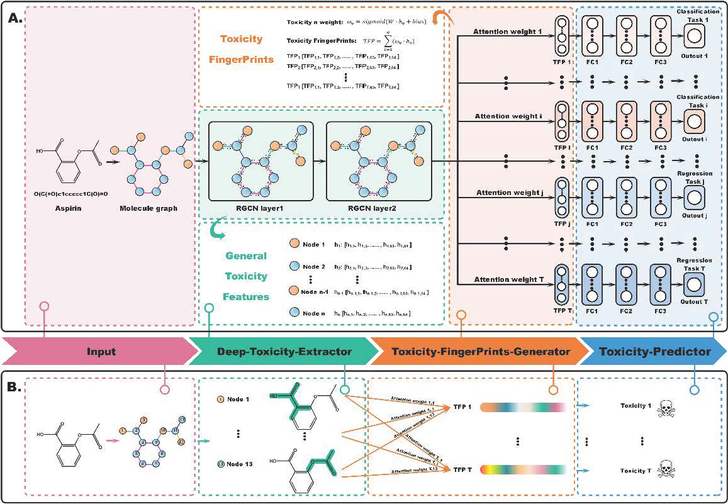 圖1.(A)MGA框架。(B)MGA用于毒性預測實例。