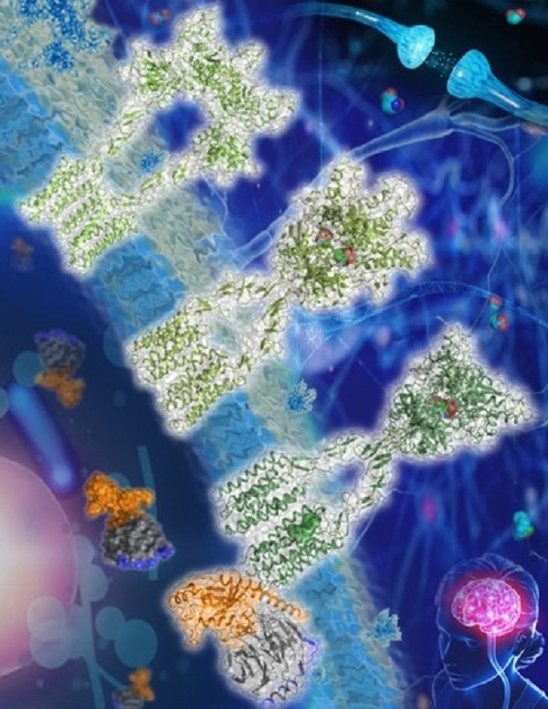 代謝型谷氨酸受體(Metabotropic glutamate receptor, mGlu)屬于C類G蛋白偶聯(lián)受體(G protein-coupled receptor, GPCR)家族,是人體內(nèi)最重要的神經(jīng)遞質(zhì)受體之一。目前在人體內(nèi)共發(fā)現(xiàn)了8種代謝型谷氨酸受體(mGlu1-8),其功能涉及學(xué)習(xí)、記憶、情緒以及疼痛感知等,是阿爾茲海默癥和精神分裂癥等疾病的治療靶點(diǎn)。然而,迄今尚無靶向這類受體的藥物成功上市,因此其結(jié)構(gòu)與功能研究對精神神經(jīng)系統(tǒng)疾病的新藥創(chuàng)制具有重要意義。與其它類型的GPCR相比,mGlu等C類GPCR具有獨(dú)特的激活機(jī)制,受體必須形成同源或異源二聚體才能行使功能。但是,長期以來不同類型二聚化對于受體活性的調(diào)控機(jī)制和該類受體如何激活G蛋白等細(xì)胞內(nèi)效應(yīng)蛋白一直不清楚。
