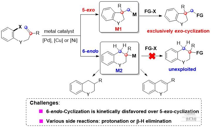 圖1. 5-exo/6-endo環(huán)化的選擇性和挑戰(zhàn)性