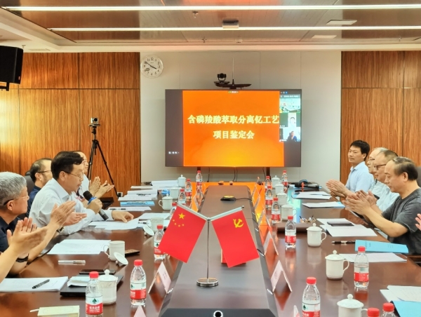 廖伍平研究員代表研究團(tuán)隊向?qū)<医M詳細(xì)匯報了項目的研究背景、科研思路、試驗?zāi)繕?biāo)和完成情況,專家組經(jīng)過現(xiàn)場考察和質(zhì)詢討論,認(rèn)為該項目將自主合成的新型萃取劑Cextrant322用于釔的萃取分離工藝具有創(chuàng)新意義,為稀土資源中高豐度元素釔的工業(yè)分離提供了新的技術(shù)方案,有望替代現(xiàn)行的環(huán)烷酸分離釔工藝,一致同意該項目通過鑒定。