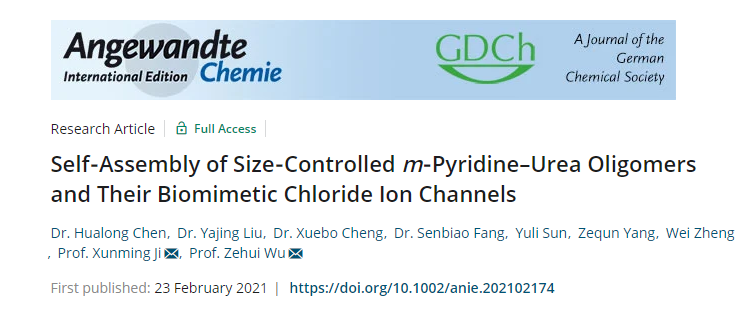 近日,首都醫(yī)科大學(xué)北京腦重大疾病研究院吳澤輝副教授團(tuán)隊(duì)在化學(xué)領(lǐng)域國際頂級(jí)期刊《Angewandte Chemie International Edition》上發(fā)表題為“Self-Assembly of Size-Controlled m-Pyridine-Urea Oligomers and Their Biomimetic Chloride Ion Channels”的研究論文。研究團(tuán)隊(duì)發(fā)現(xiàn),線性間吡啶二脲衍生物通過引入分子內(nèi)六角型氫鍵和分子間氫鍵,可以自身折疊和組裝形成氯離子通道,有望應(yīng)用于氯離子通道相關(guān)疾病的診斷。北京腦重大疾病研究院助理研究員陳華龍和藥學(xué)院副教授劉亞靜為共同第一作者,吳澤輝副教授為通訊作者。