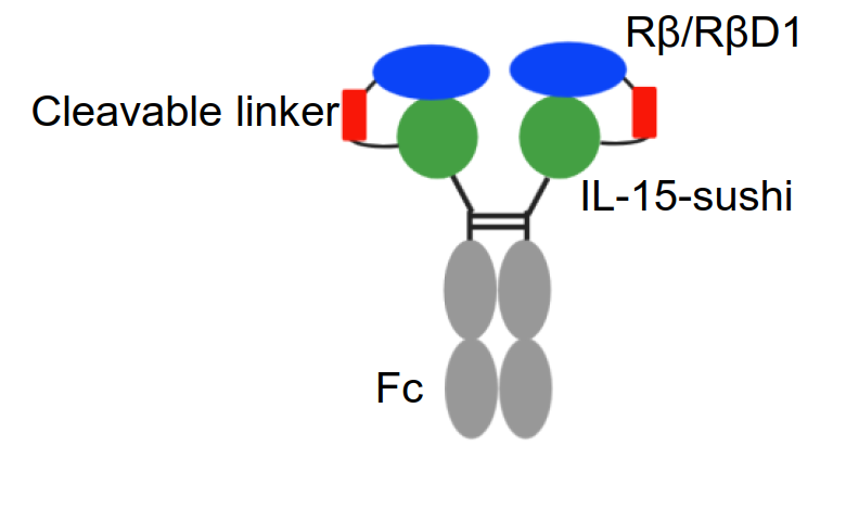 目前,大多數(shù)腫瘤免疫療法主要聚焦于阻斷免疫抑制信號或激活免疫刺激信號。然而,嚴(yán)重的治療相關(guān)毒性和非腫瘤靶向分布所導(dǎo)致的腫瘤控制不佳等問題限制了免疫治療的臨床應(yīng)用。IL-2 是一種可擴(kuò)增 T 細(xì)胞和 NK 細(xì)胞的多效細(xì)胞因子,是 FDA 最早批準(zhǔn)應(yīng)用于轉(zhuǎn)移性黑色素瘤和腎癌的免疫治療藥物之一。由于IL-2同時(shí)可以激活免疫抑制性調(diào)節(jié)T細(xì)胞(Regulatory T cells , Treg)、誘導(dǎo)效應(yīng)T細(xì)胞死亡(Activation induced cell death, AICD)、刺激血管內(nèi)皮細(xì)胞,產(chǎn)生嚴(yán)重的毒副作用,一直未被廣泛應(yīng)用于臨床。IL-15相較于IL-2在腫瘤治療方面具有以下優(yōu)勢:(1)IL-15可以避免活化誘導(dǎo)的細(xì)胞死亡,誘導(dǎo)較長壽命的記憶性T細(xì)胞的產(chǎn)生和穩(wěn)態(tài)增殖;(2)IL-15不會擴(kuò)增Treg細(xì)胞。(3)IL-15沒有作用于血管內(nèi)皮細(xì)胞而引起系統(tǒng)性毒副作用。因此,IL-15是目前很有潛力的腫瘤免疫治療細(xì)胞因子。然而由于其受體在外周組織廣泛表達(dá),IL-15注射給藥通常會引起毒副作用,限制腫瘤治療效果?;贗L-15的免疫調(diào)節(jié)活性,研究人員首次研究設(shè)計(jì)一種高效、低毒的抗腫瘤前體藥物,pro-IL-15。研究人員將IL-15Rβ的胞外域通過金屬基質(zhì)蛋白酶-14(該酶在腫瘤組織特異性高表達(dá),在正常組織表達(dá)較低)的底物多肽連接到IL-15的N端,用來可逆性地封閉IL-15的活性。Pro-IL-15在外周處于封閉狀態(tài)從而避免活性釋放引起毒性;當(dāng)藥物進(jìn)入腫瘤組織,腫瘤中高表達(dá)的金屬基質(zhì)蛋白酶-14消化切割連接肽段,釋放出IL-15的活性,激活抗腫瘤免疫反應(yīng)。