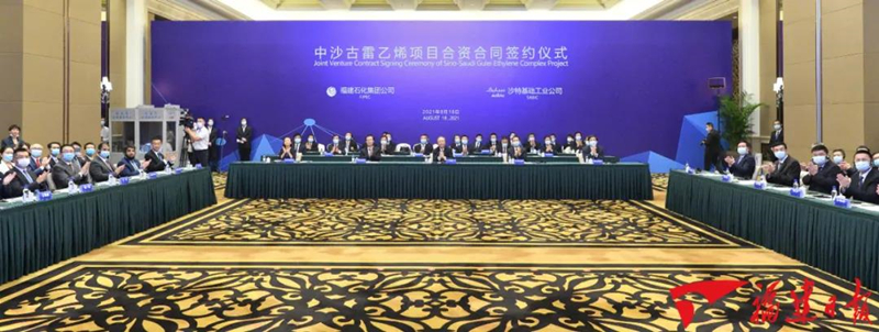 日前,中沙古雷乙烯項目合資合同正式簽約,簽約儀式以視頻連線“云簽署”方式舉行。福建省委書記尹力、省長王寧,沙特基礎工業(yè)公司副董事長兼首席執(zhí)行官尤素福·阿爾-拜延共同見證了此次合作達成。