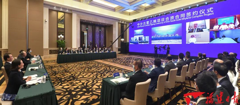 尹力代表省委、省政府向項目正式簽約表示祝賀。他說,福建是海上絲綢之路的起點,沙特是最早參與“一帶一路”倡議的國家之一。這次雙方合作的中沙古雷乙烯項目,是“中沙產(chǎn)能與投資合作重點項目”,對于推進共建“一帶一路”倡議同沙特“2030愿景”對接,進一步加深和鞏固中沙長期合作與友誼,都具有重要意義。福建高度重視合作項目,希望雙方共同努力,實現(xiàn)互利共贏。我們愿與沙特基礎工業(yè)公司一道,攜手推進科技創(chuàng)新,加強產(chǎn)業(yè)關鍵核心技術聯(lián)合攻關,研發(fā)生產(chǎn)更多高附加值產(chǎn)品,滿足市場需要;攜手打造現(xiàn)代產(chǎn)業(yè),以項目落地為契機,培育世界一流石化企業(yè),建設世界一流石化產(chǎn)業(yè)園區(qū),推動福建石化產(chǎn)業(yè)不斷發(fā)展壯大;攜手開拓國際市場,相互牽線搭橋,通過多種方式加強更多領域合作,共同塑造國際合作和競爭新優(yōu)勢。尹力表示,福建各有關方面將加緊工作節(jié)奏,在防控好疫情的前提下,加快項目建設進度,推動早投產(chǎn)、早達產(chǎn)、早見效。