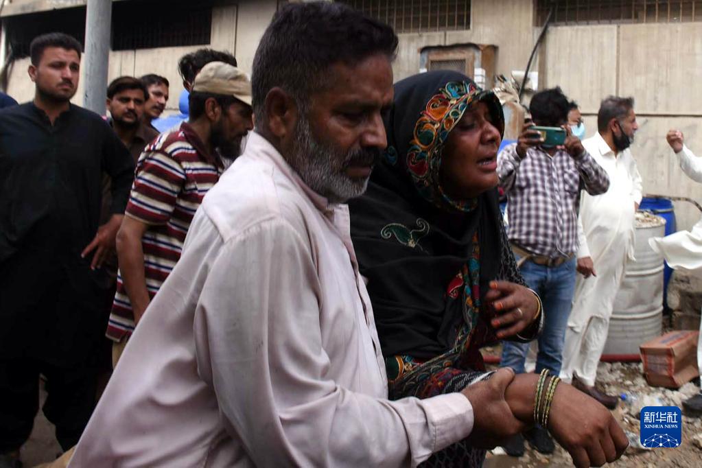 8月27日,在巴基斯坦卡拉奇的火災現(xiàn)場,一名遇難者家屬悲痛不已。新華社發(fā)