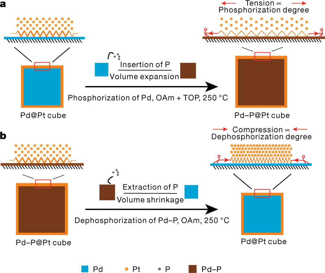 利用鈀基納米立方體內(nèi)核在磷化/去磷化過程中的體積伸縮調(diào)控鉑殼層晶格應(yīng)變