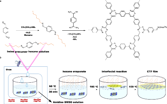 圖1脂肪胺介導(dǎo)的共價三嗪框架薄膜制備策略示意圖