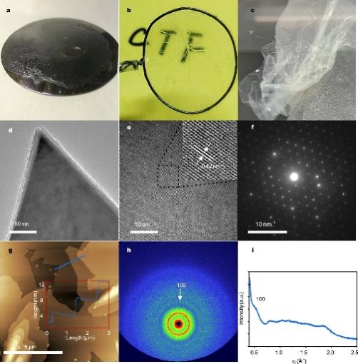 圖2共價三嗪框架薄膜的光學(xué)照片及微觀形貌表征