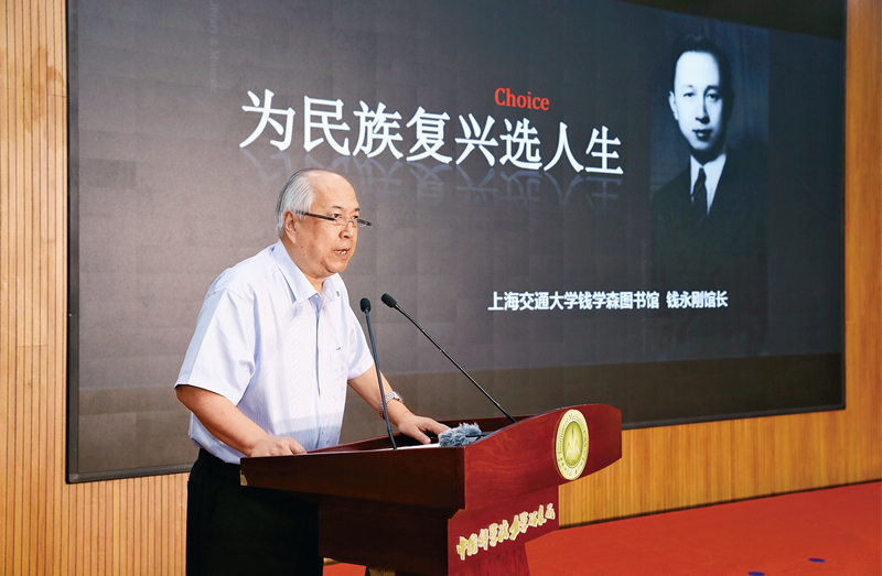 2021年7月15日,中國科學(xué)院在該院力學(xué)研究所為首個弘揚科學(xué)家精神示范基地授牌,并為以錢學(xué)森、趙九章、施雅風(fēng)等老科學(xué)家命名的首批三支科技攻關(guān)突擊隊授旗。圖為活動現(xiàn)場,錢學(xué)森之子錢永剛講述錢學(xué)森的五次人生選擇。 新華社記者 金立旺/攝