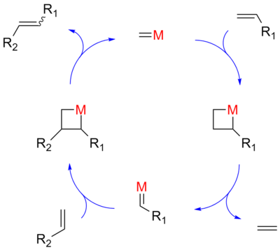 ▲烯烴復(fù)分解反應(yīng)催化機(jī)理(圖片來源:維基百科)