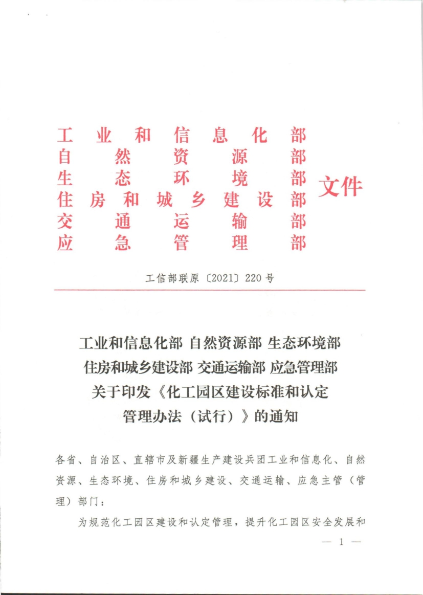 導(dǎo)讀:為規(guī)范化工園區(qū)建設(shè)和認(rèn)定管理,提升化工園區(qū)安全發(fā)展和綠色發(fā)展水平,工信部等六部委近日聯(lián)合印發(fā)《化工園區(qū)建設(shè)標(biāo)準(zhǔn)和認(rèn)定管理辦法(試行)》。