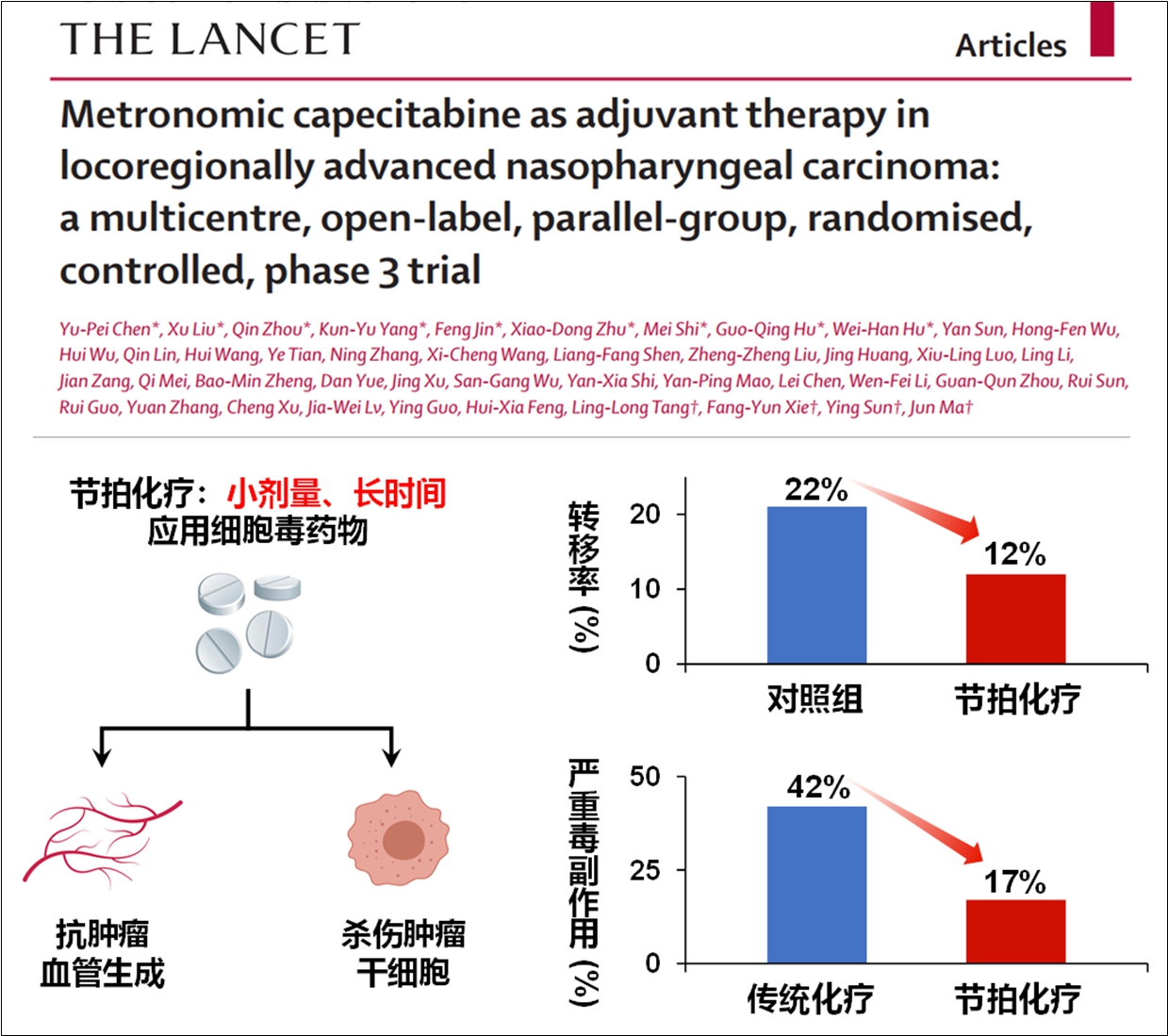 鼻咽癌是“中國(guó)特色”腫瘤,年新發(fā)病例占全球一半。放療后的全身微小殘留腫瘤是其治療失敗的根源,而由于放療后患者身體狀況差,難以耐受既往高強(qiáng)度的傳統(tǒng)化療(完成率僅約40%-50%),成為制約療效提高的瓶頸。