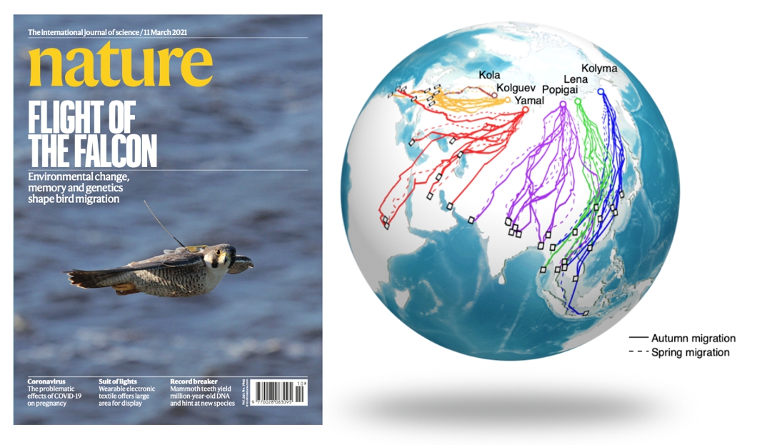 中國(guó)科學(xué)院動(dòng)物研究所詹祥江團(tuán)隊(duì)歷時(shí)12年,通過(guò)整合多年衛(wèi)星追蹤數(shù)據(jù)和種群基因組信息,建立了一套大陸尺度的的北極游隼(Falco peregrinus)遷徙研究系統(tǒng)。研究人員闡明了氣候變化在鳥(niǎo)類(lèi)遷徙路線形成、維持及未來(lái)變化趨勢(shì)中的驅(qū)動(dòng)作用,發(fā)現(xiàn)一個(gè)和記憶能力相關(guān)的基因ADCY8在遷徙距離更長(zhǎng)的游隼種群中受到正選擇,揭示了長(zhǎng)時(shí)記憶可能是鳥(niǎo)類(lèi)長(zhǎng)距離遷徙的重要基礎(chǔ)。該研究全面結(jié)合遙感衛(wèi)星追蹤、基因組學(xué)、神經(jīng)生物學(xué)等新型研究手段,展現(xiàn)了學(xué)科交叉型的創(chuàng)新性研究在回答重大科學(xué)問(wèn)題中的關(guān)鍵作用。