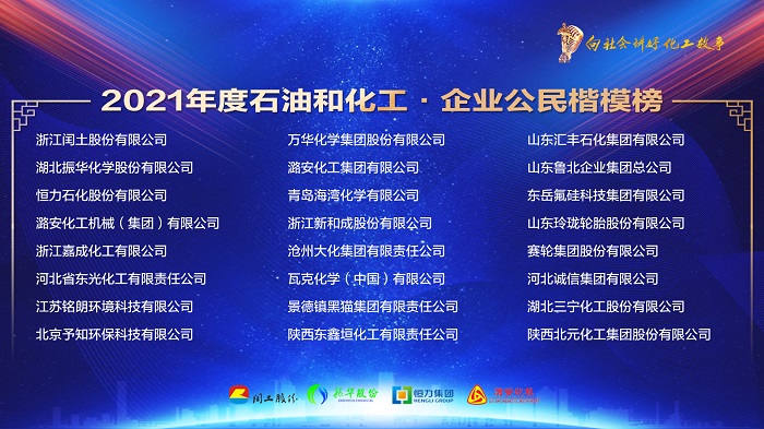發(fā)布盛典上,同時(shí)發(fā)布了《2021年度石油和化工行業(yè)責(zé)任關(guān)懷輿情報(bào)告》和2021年度中國(guó)石油和化工行業(yè)企業(yè)公民楷模榜,萬(wàn)華化學(xué)、浙江閏土等50家企業(yè)上榜。