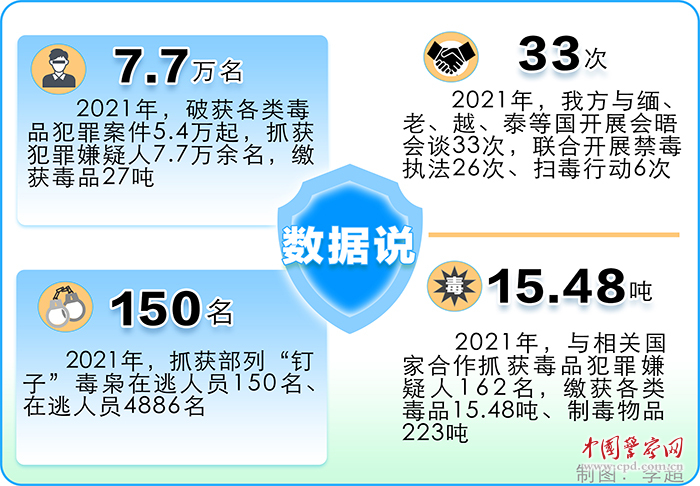 堅(jiān)持同防共治,國際緝毒執(zhí)法合作獲得新發(fā)展。連續(xù)6年開展中老緬泰平安航道聯(lián)合掃毒行動(dòng),組織開展中泰、中越聯(lián)合掃毒,有效減少了區(qū)域內(nèi)毒品危害。僅2021年底,我國會(huì)同柬方連續(xù)破獲幾起跨國制販毒大要案,先后在柬埔寨打掉規(guī)模性制毒工廠,抓獲犯罪嫌疑人46名,繳獲毒品2.95噸、市值近17億元。