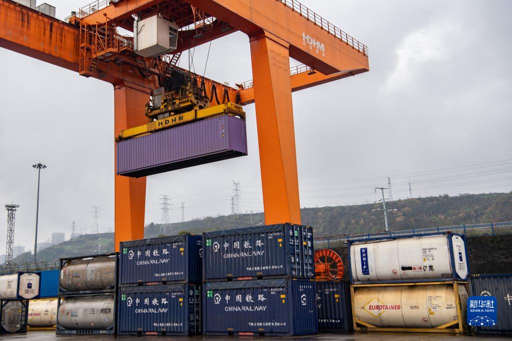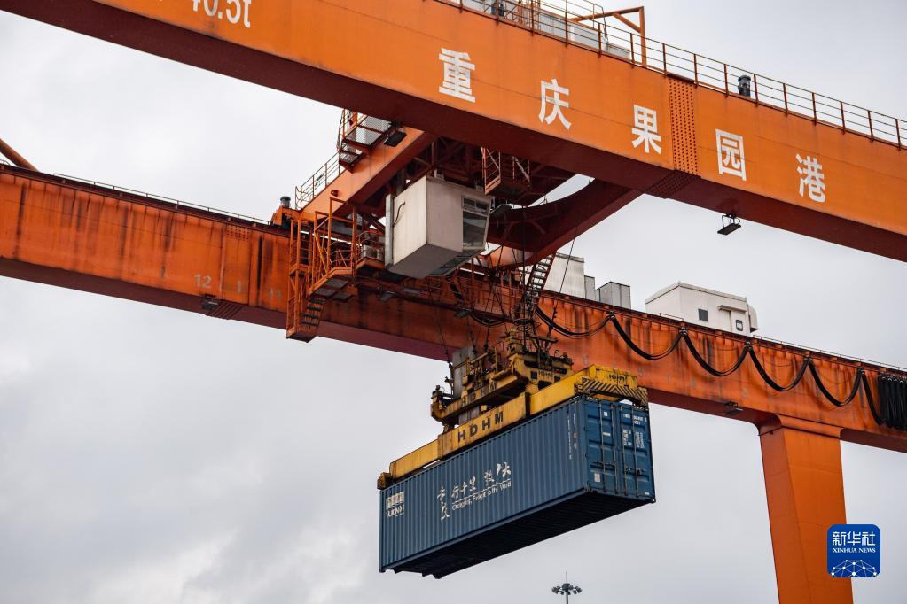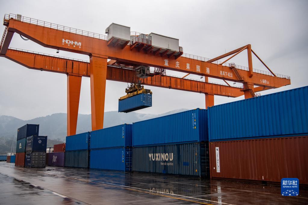 這是2月19日拍攝的重慶果園港裝載作業(yè)現(xiàn)場(chǎng)。新華社記者 唐奕 攝