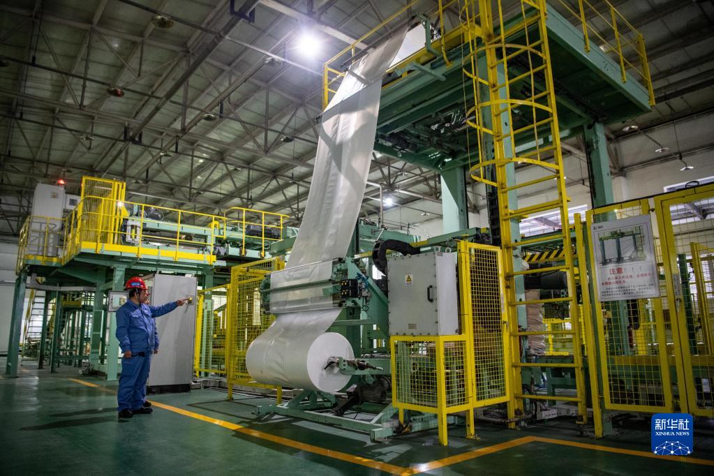 2月12日,工作人員在抽檢聚乙烯醇(PVA)產(chǎn)品打包情況。新華社記者 唐奕 攝