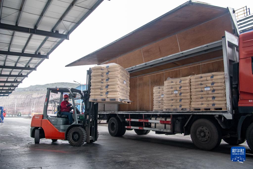 2月12日,工作人員將川維化工聚乙烯醇(PVA)產(chǎn)品裝車(chē)。新華社記者 唐奕 攝
