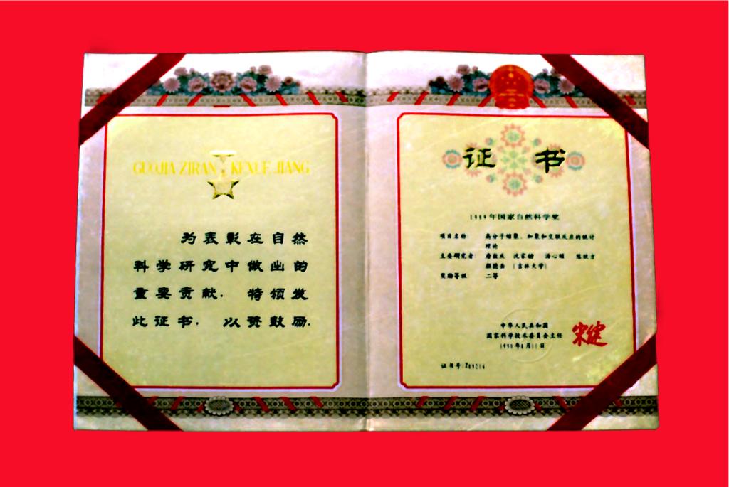 圖23:唐敖慶等人獲2000年國(guó)家自然科學(xué)獎(jiǎng)二等獎(jiǎng)證書(shū)