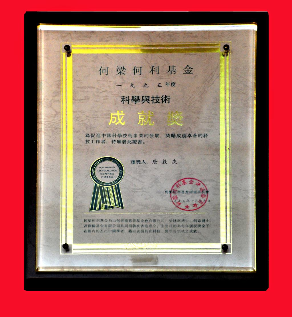 圖25:唐敖慶獲1993年度陳嘉庚化學(xué)獎(jiǎng)(左)、1995年度何梁何利科學(xué)與技術(shù)成就獎(jiǎng)(右)