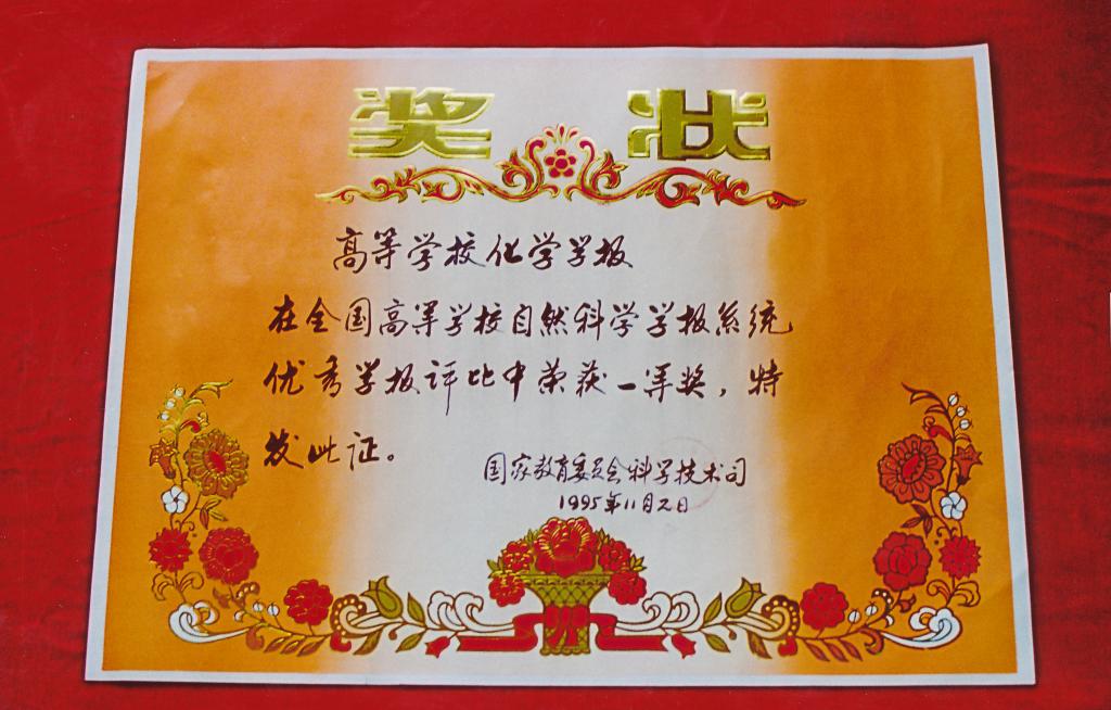 圖31:《高等學(xué)?;瘜W(xué)學(xué)報(bào)》榮獲全國(guó)高校自然科學(xué)優(yōu)秀學(xué)報(bào)一等獎(jiǎng)