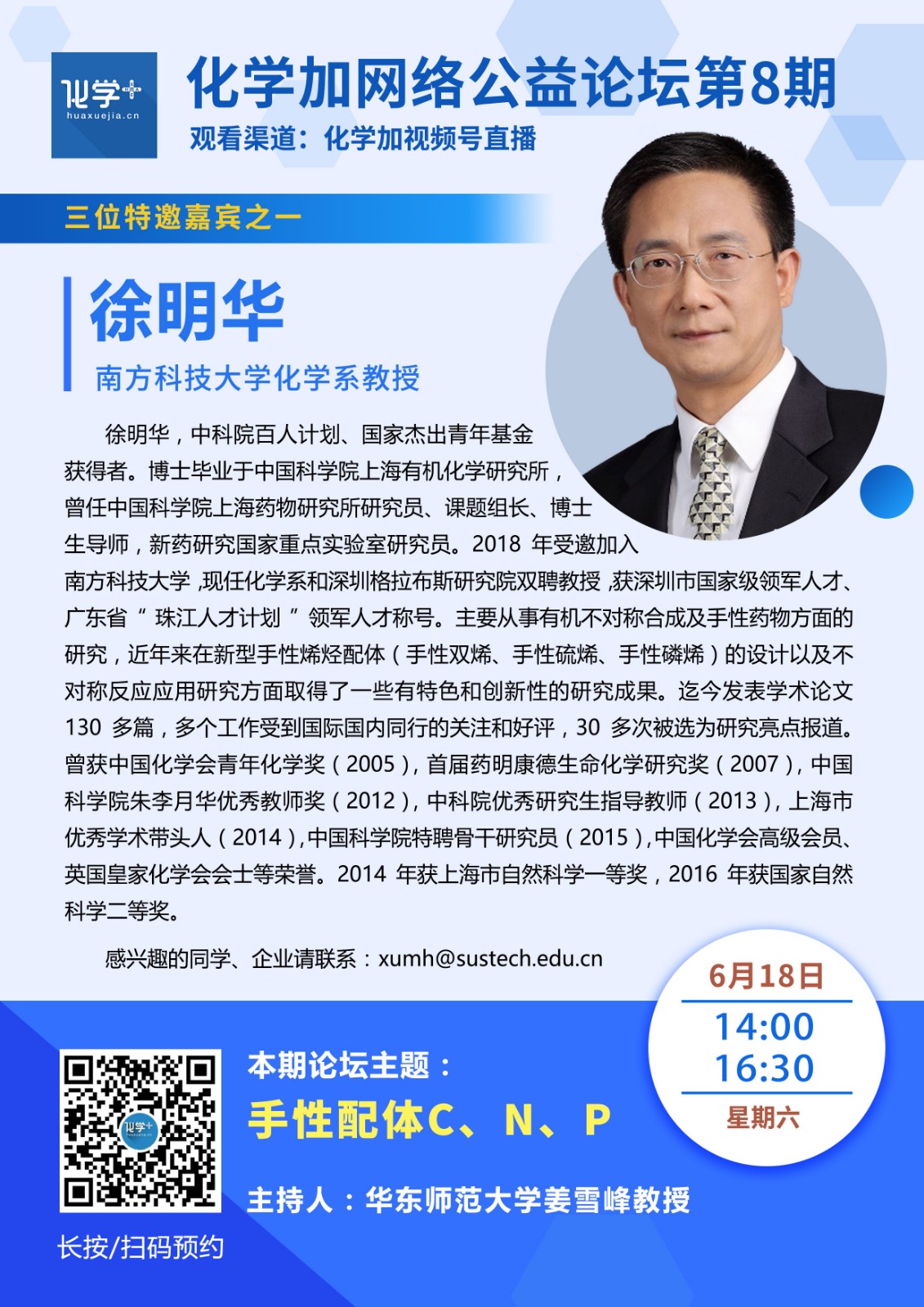 徐明華 南方科技大學(xué)化學(xué)系教授:手性烯烴配體設(shè)計及不對稱催化反應(yīng)研究