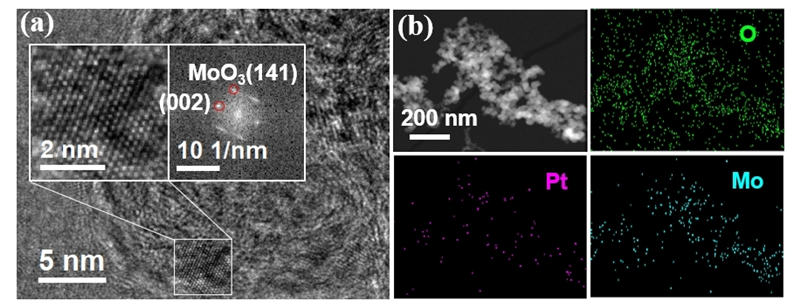 圖1. Pt-MoO3/C的HRTEM和能譜表征結(jié)果。