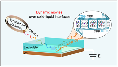能量存儲和轉(zhuǎn)換過程的表界面動力學研究一直是能源領域研究的熱點和難點,其中固-液界面的反應動力學探測極具挑戰(zhàn)性。同步輻射具有亮度高、準直性好、頻譜連續(xù)等諸多優(yōu)異的特性,能夠有效探測材料表界面的局域原子和電子結構,非常適合原位追蹤反應過程中固-液界面結構變化的動態(tài)過程,實時在線探測固-液界面活性中心結構和反應中間體在能量轉(zhuǎn)換過程中的變化及其演變規(guī)律。