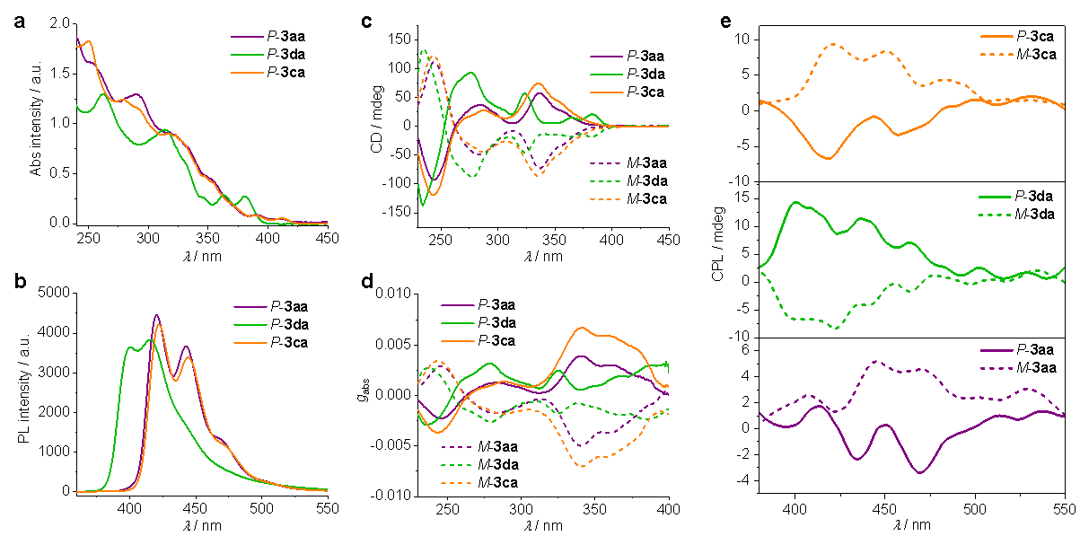 與此同時,該研究還完成了對部分吡啶并螺烯化合物的光學(xué)活性表征。結(jié)果表明此類手性吡啶并螺烯化合物具有良好的CPL活性。