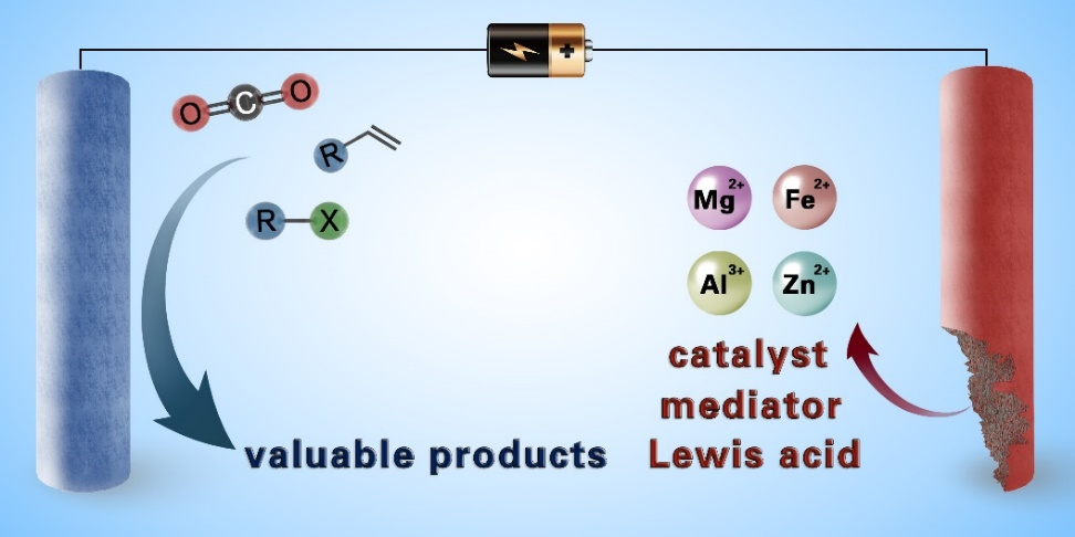 有機電合成作為一種綠色高效的合成方法,已成為有機合成研究的熱點并在許多領(lǐng)域中得到了廣泛應(yīng)用。最近,犧牲陽極的電還原反應(yīng)受到廣泛關(guān)注,該類反應(yīng)一般使用具有較低氧化電勢的廉價金屬(如鋅、鐵、鎂等)作為陽極,避免了反應(yīng)物、活性中間體以及產(chǎn)物在陽極被氧化分解,同時犧牲陽極產(chǎn)生的金屬離子可以作為Lewis酸活化底物,也可以作為反應(yīng)的促進劑。相較于傳統(tǒng)的合成方法,犧牲陽極的電還原反應(yīng)具有條件溫和、選擇性高、反應(yīng)活性多樣等優(yōu)點。