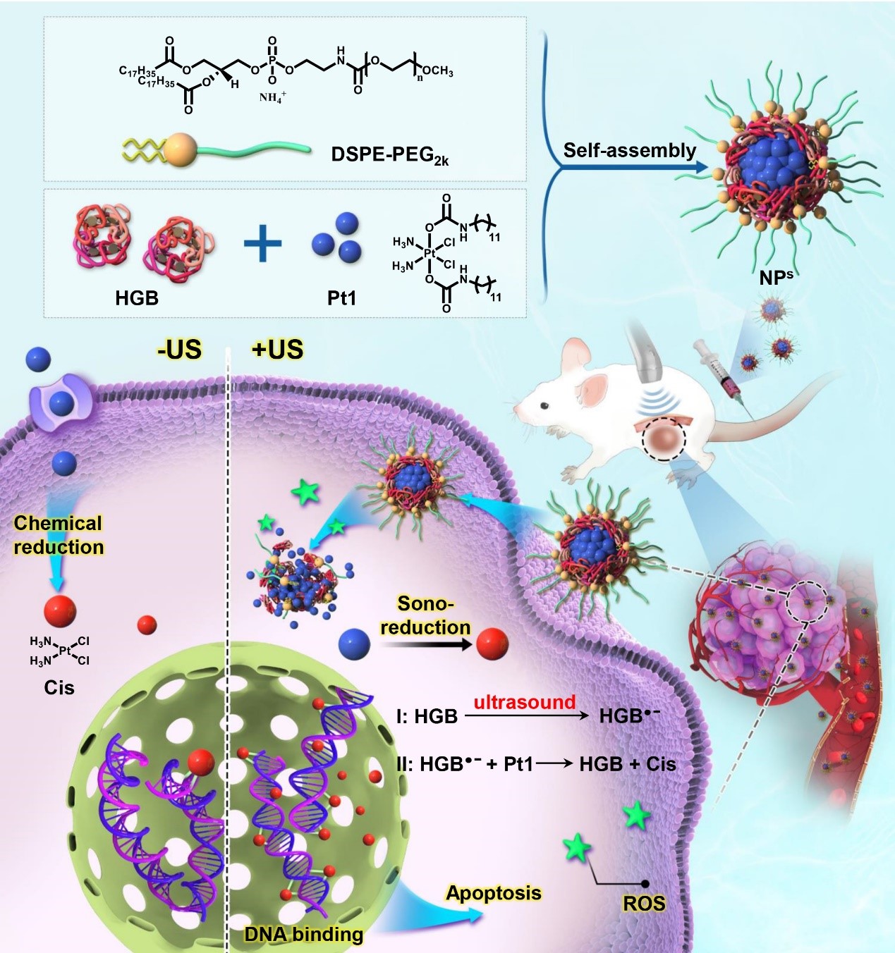 NPs靶向腫瘤部位后在深層穿透超聲作用下觸發(fā)Pt(IV)還原治療腫瘤的原理圖