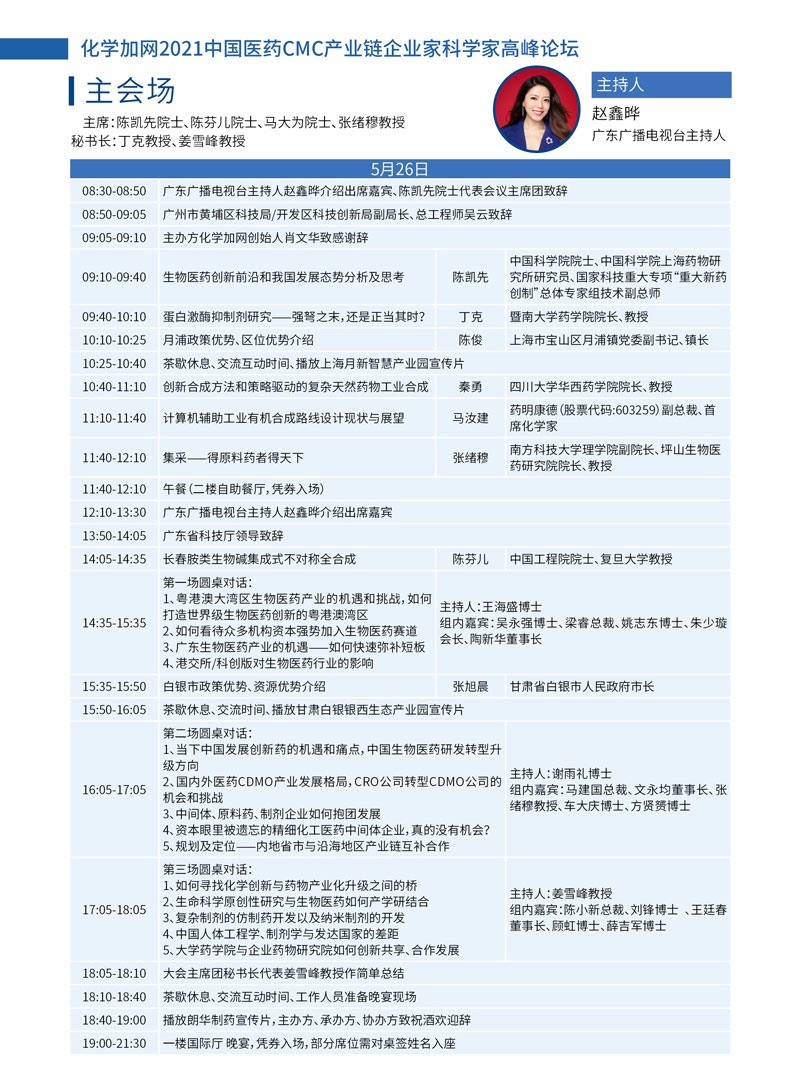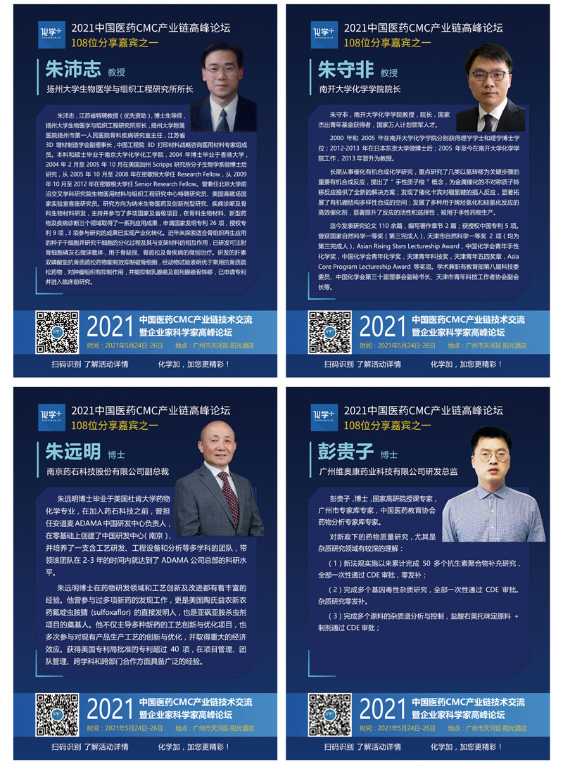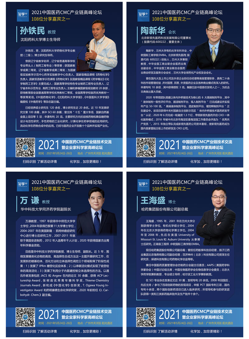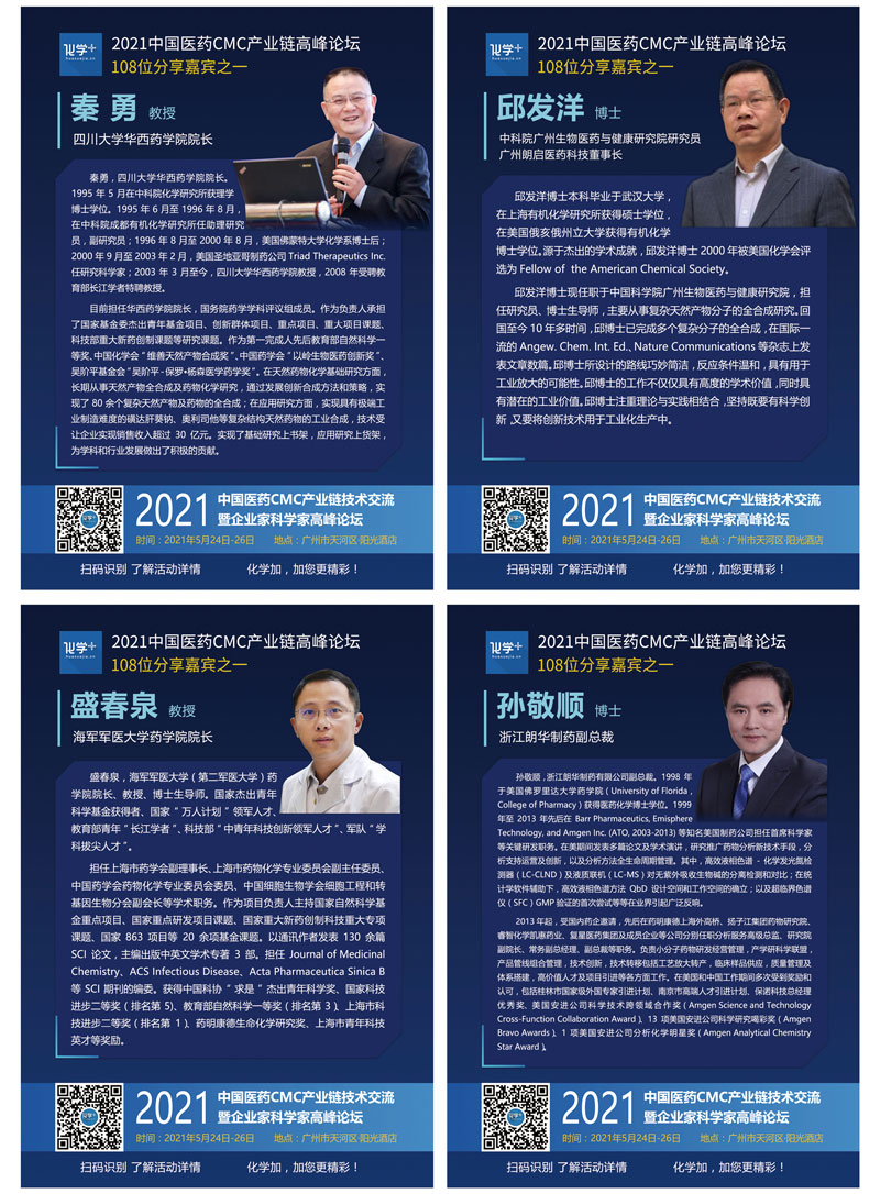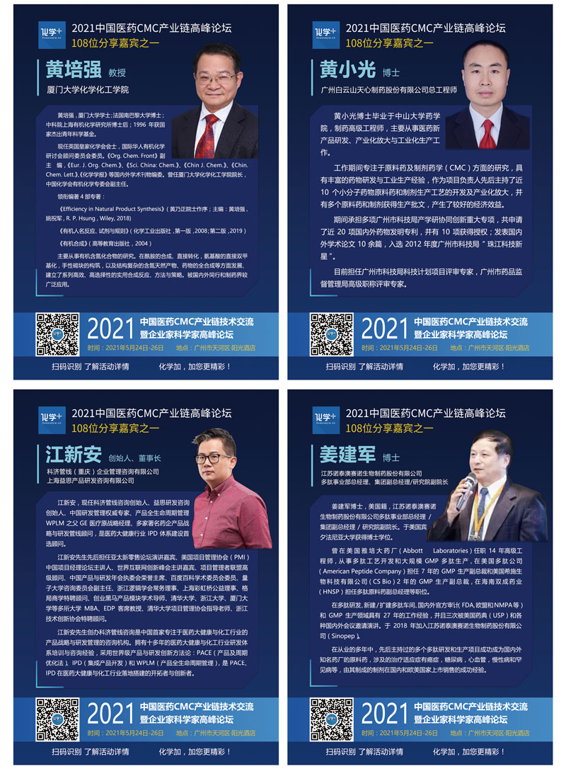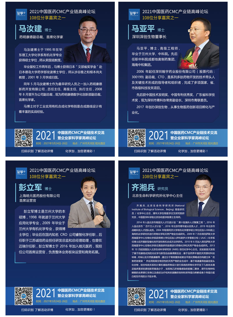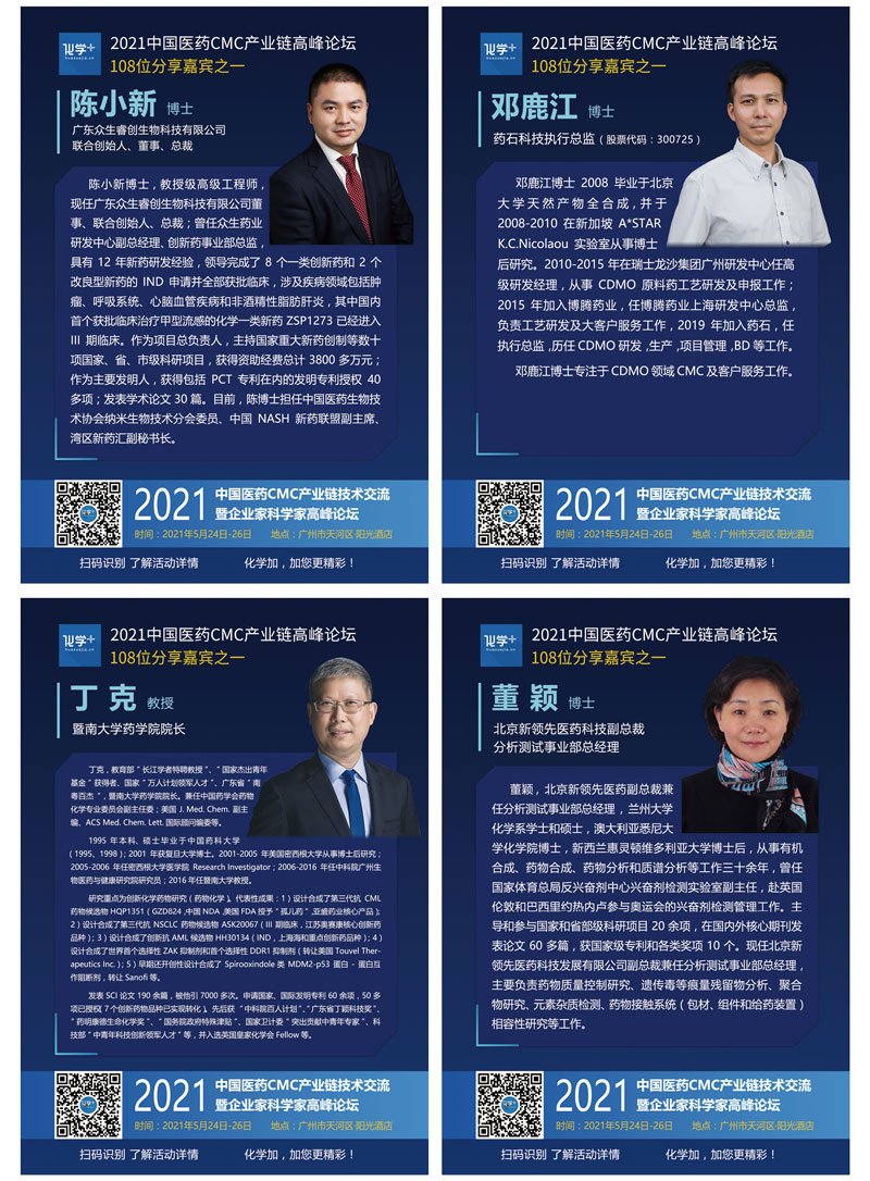 導(dǎo)讀:2021年5月24日-26日,化學(xué)加2021廣州峰會(huì)“第一屆中國醫(yī)藥CMC產(chǎn)業(yè)鏈技術(shù)交流暨企業(yè)家科學(xué)家高峰論壇”線下千人大會(huì)在廣州成功舉辦,中國科學(xué)院院士陳凱先研究員、中國工程院院士陳芬兒教授、中國科學(xué)院院士馬大為研究員、廣東省科學(xué)技術(shù)廳二級(jí)巡視員周木堂等108位重量級(jí)嘉賓出席,并做主題分享。