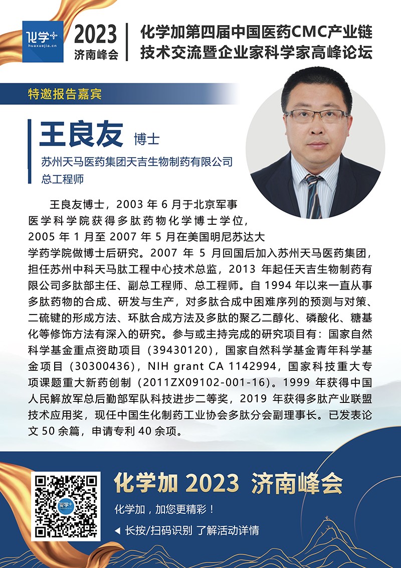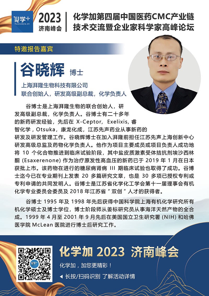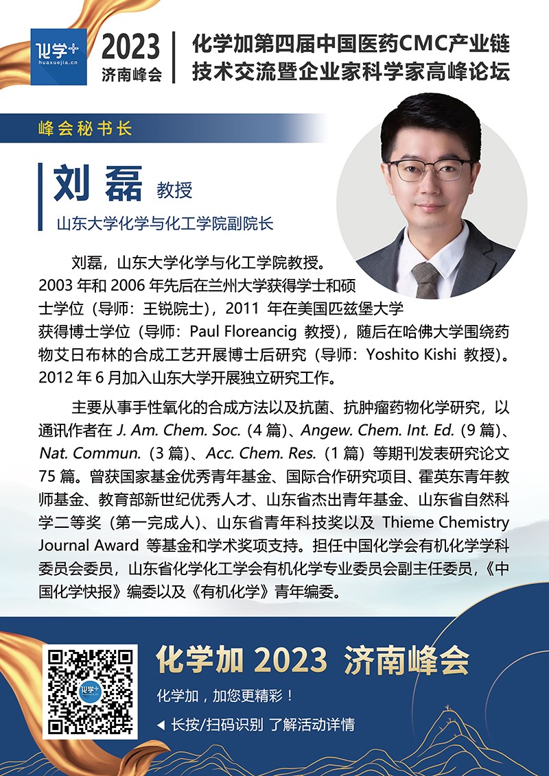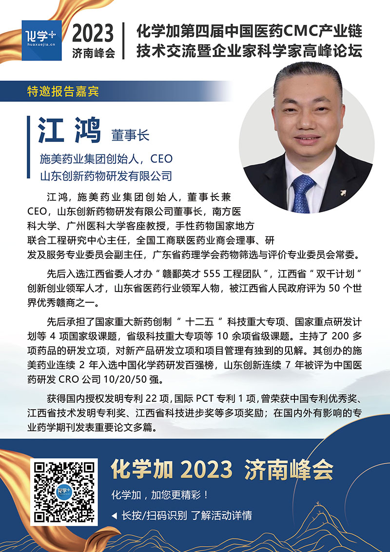 【嘉賓簡介】化學(xué)加2023濟(jì)南峰會(huì):第四屆中國醫(yī)藥CMC產(chǎn)業(yè)鏈技術(shù)交流暨企業(yè)家科學(xué)家高峰論壇