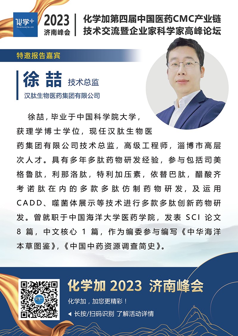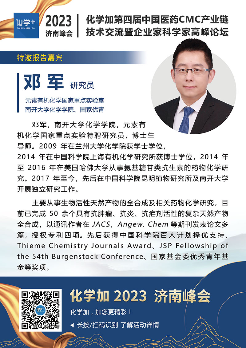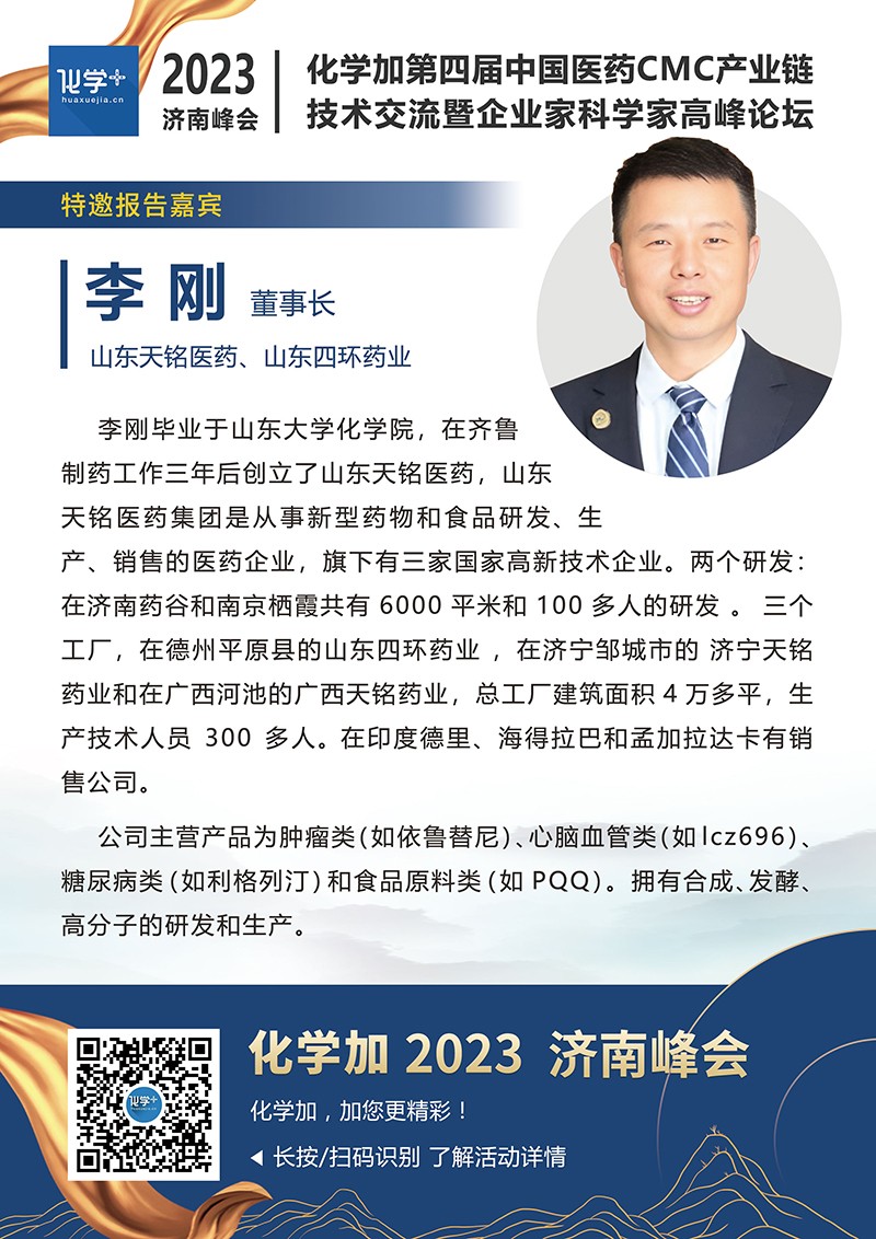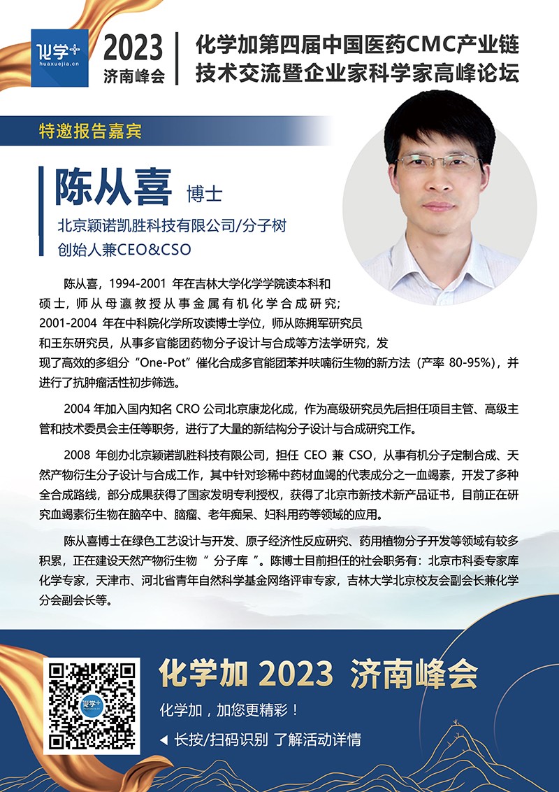 【嘉賓簡介】化學(xué)加2023濟(jì)南峰會(huì):第四屆中國醫(yī)藥CMC產(chǎn)業(yè)鏈技術(shù)交流暨企業(yè)家科學(xué)家高峰論壇