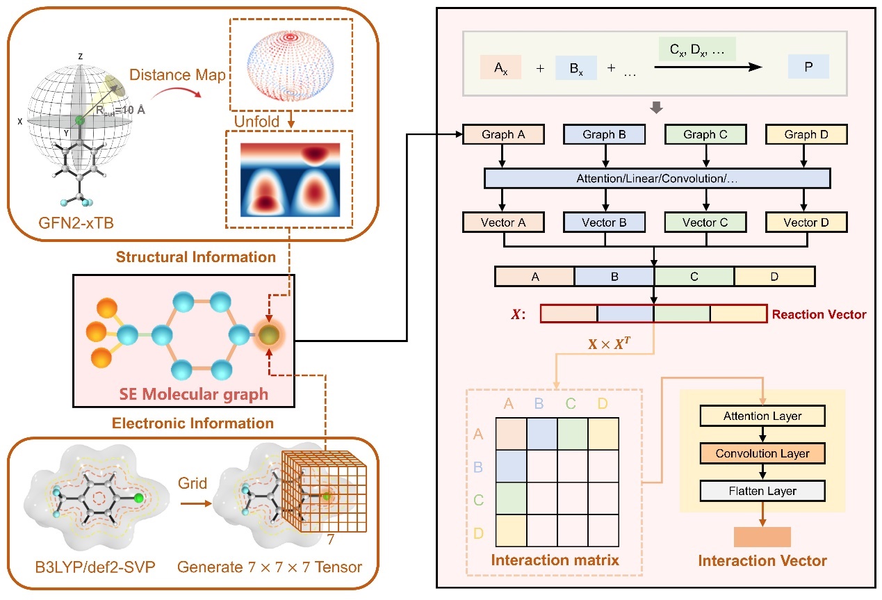 隨著化學(xué)大數(shù)據(jù)和人工智能模型跨越式的發(fā)展,數(shù)據(jù)驅(qū)動(dòng)的合成反應(yīng)精準(zhǔn)預(yù)測(cè)近年來(lái)引起了廣泛關(guān)注。由于合成反應(yīng)構(gòu)效關(guān)系高維且復(fù)雜的特性,催化劑、反應(yīng)物、甚至溶劑細(xì)微的結(jié)構(gòu)變化都可能引起反應(yīng)活性和選擇性的顯著改變。因此,開(kāi)發(fā)一種高效、可靠的AI預(yù)測(cè)模型對(duì)于合成反應(yīng)的智能設(shè)計(jì)至關(guān)重要。