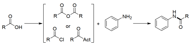 羧酸和苯胺的直接脫水縮合是一個合成N-芳基酰胺的經(jīng)典途徑。然而,由于羧酸反應活性較低,通常需要首先轉(zhuǎn)化為其活性形式,如酰氯和酸酐等;或需要化學計量偶聯(lián)試劑(碳二亞胺等)輔助脫水縮合來合成酰胺。因此,該方法繁瑣的操作、苛刻的反應條件、伴隨的過量廢物和副產(chǎn)物等缺點,限制了其更多的實際應用。發(fā)展出一種高效、綠色、條件溫和的合成N-芳基酰胺的方法仍是存在很大需求。