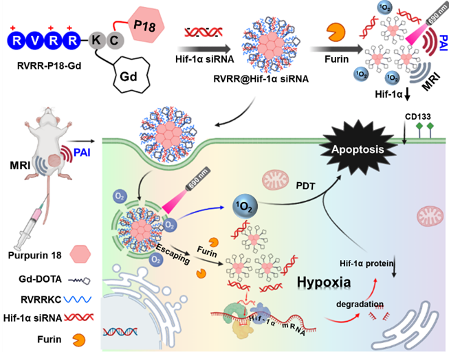 圖1.弗林蛋白酶介導(dǎo)的Hif-1α siRNA腫瘤精準(zhǔn)遞送用于抗乏氧腫瘤光動(dòng)力治療
