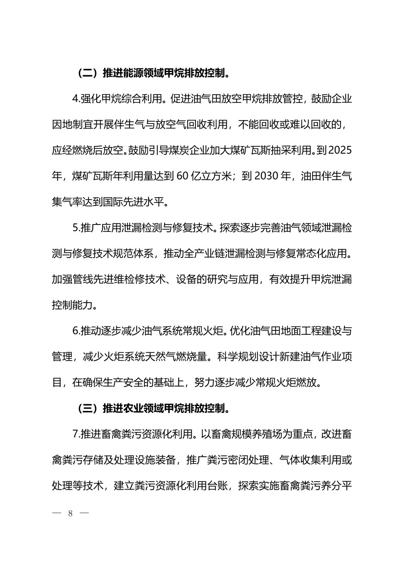 甲烷作為全球第二大溫室氣體,具有增溫潛勢(shì)高、壽命短的特點(diǎn),主要來(lái)源于煤炭、油氣生產(chǎn)、農(nóng)業(yè)和廢棄物處理等領(lǐng)域。我國(guó)高度重視甲烷控排工作,2007年我國(guó)制定的《中國(guó)應(yīng)對(duì)氣候變化國(guó)家方案》提出控制甲烷排放相關(guān)要求;“十二五”和“十三五”的控制溫室氣體排放工作方案中均提出控制甲烷等非二氧化碳溫室氣體相關(guān)措施;“十四五”規(guī)劃和《中共中央 國(guó)務(wù)院關(guān)于完整準(zhǔn)確全面貫徹新發(fā)展理念做好碳達(dá)峰碳中和工作的意見》等文件均對(duì)甲烷管控做出要求。
