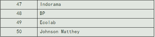 有5家去年上榜的公司退出了今年的排行榜,包括Alpek、埃尼、加拿大鉀肥公司、Styrolution和道達(dá)爾。其中Alpek、埃尼和Styrolution是石化產(chǎn)品和聚合物生產(chǎn)商,雖然道達(dá)爾公司也是石化產(chǎn)品和聚合物生產(chǎn)商,但是其退出的原因是該公司不再單獨(dú)報(bào)告石化業(yè)務(wù)的業(yè)績(jī)情況。而加拿大鉀肥公司退出的原因是鉀肥價(jià)格大幅下跌。