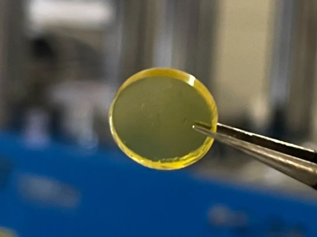 記者在現(xiàn)場(chǎng)看到,這個(gè)新物質(zhì)是一顆像紐扣一樣的黃色小塊體,表面上看平平無(wú)奇。就連課題組一開(kāi)始也沒(méi)意識(shí)到這是一個(gè)新物質(zhì)。