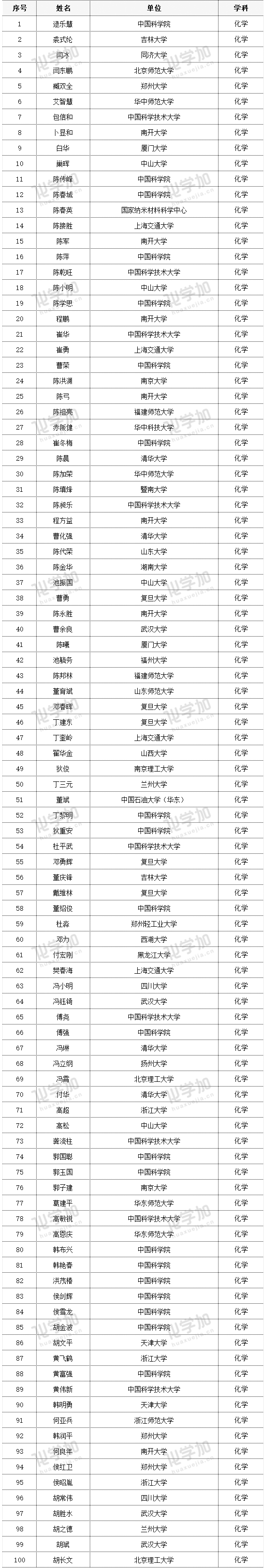 2023“中國(guó)高被引學(xué)者”榜單發(fā)布,化學(xué)學(xué)科上榜446人