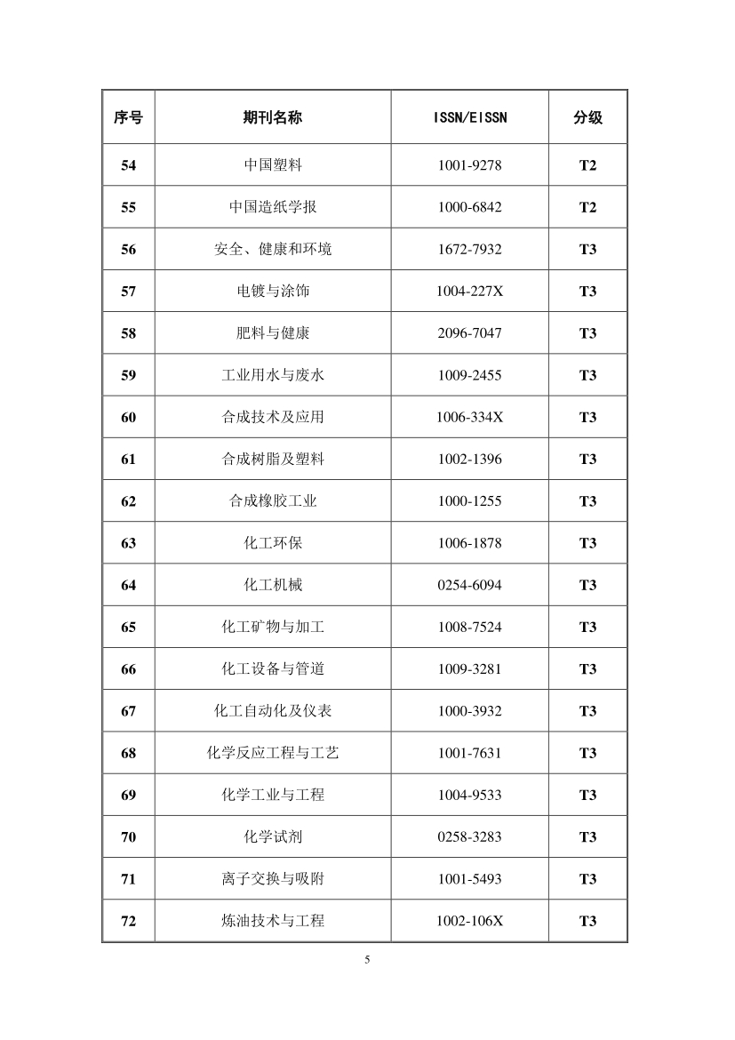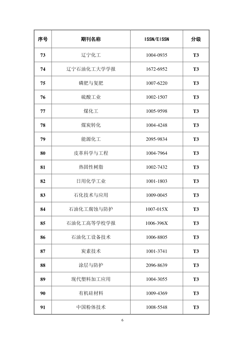 導(dǎo)讀:為加快推進(jìn)世界一流科技期刊建設(shè),推動(dòng)建設(shè)中外期刊同質(zhì)等效的評(píng)價(jià)體系,在中國(guó)科協(xié)的統(tǒng)一部署下,中國(guó)化工學(xué)會(huì)以“同行評(píng)議、價(jià)值導(dǎo)向、等效使用”為原則,采取定量評(píng)價(jià)與定性評(píng)價(jià)相結(jié)合的方式,負(fù)責(zé)組織實(shí)施了化工領(lǐng)域高質(zhì)量科技期刊分級(jí)目錄認(rèn)定及發(fā)布工作。經(jīng)過期刊征集、指標(biāo)構(gòu)建、專家初評(píng)、審定終評(píng)、結(jié)果公示等環(huán)節(jié),最終共有93種期刊進(jìn)入首版分級(jí)目錄,其中T1級(jí)期刊19種,T2級(jí)期刊36種,T3級(jí)期刊38種?,F(xiàn)予正式發(fā)布。