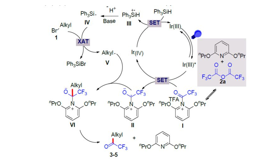 近日,南方科技大學(xué)舒?zhèn)フn題組報道了一種光催化烷基溴與三氟乙酸酐合成三氟甲基酮的方法。該反應(yīng)的特點是結(jié)合可見光催化和鹵原子轉(zhuǎn)移(XAT)的雙重催化,然后烷基自由基與穩(wěn)定的三氟乙?;杂苫軌蝽樌M行自由...