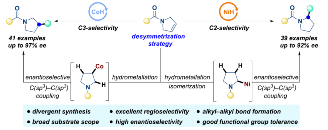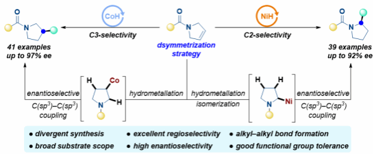 手性2-取代/3-取代的吡咯烷骨架廣泛存在于活性天然產(chǎn)物以及藥物分子中,也是功能材料和藥物中間體的重要骨架,由于其特殊的活性,在材料科學(xué)和藥物設(shè)計(jì)領(lǐng)域備受青睞。不僅如此,手性吡咯烷及其衍生物還可作為手...