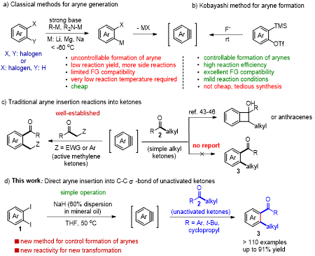 苯炔/芳炔是一種高活性中間體,能夠發(fā)生眾多類型的反應(yīng),在藥物化學(xué)和藥物合成中發(fā)揮著重要的作用。經(jīng)典苯炔化學(xué)產(chǎn)生苯炔主要使用兩大類方法:1)由鹵代苯+可溶性強堿產(chǎn)生苯炔,不僅官能團兼容性差,而且因為迅速...