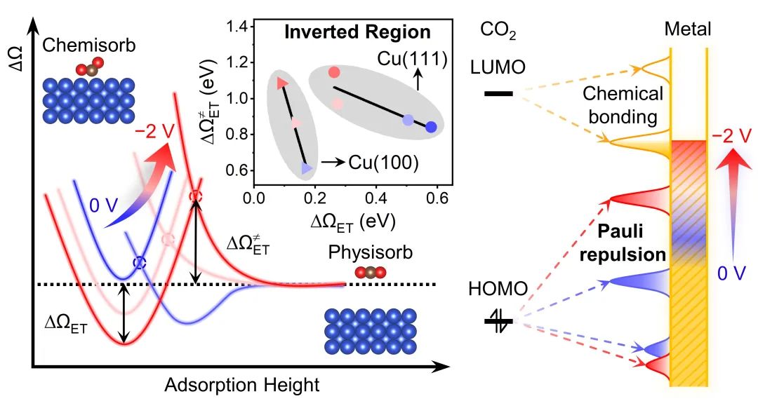近日,清華大學(xué)化學(xué)系肖海副教授課題組在電化學(xué)二氧化碳還原反應(yīng)(eCO2RR)的基礎(chǔ)研究中取得新進展,通過第一性原理計算模擬,發(fā)現(xiàn)在銅(Cu)金屬表面上CO2活化的電子轉(zhuǎn)移(ET)基元步驟的反應(yīng)動力學(xué)隨...