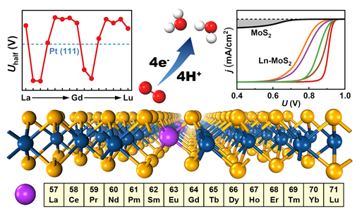 寧波材料所在二硫化鉬電化學(xué)行為研究方面取得新進(jìn)展,相關(guān)成果以“Lanthanide-doped MoS2 with enhanced oxygen reduction activity and bip...