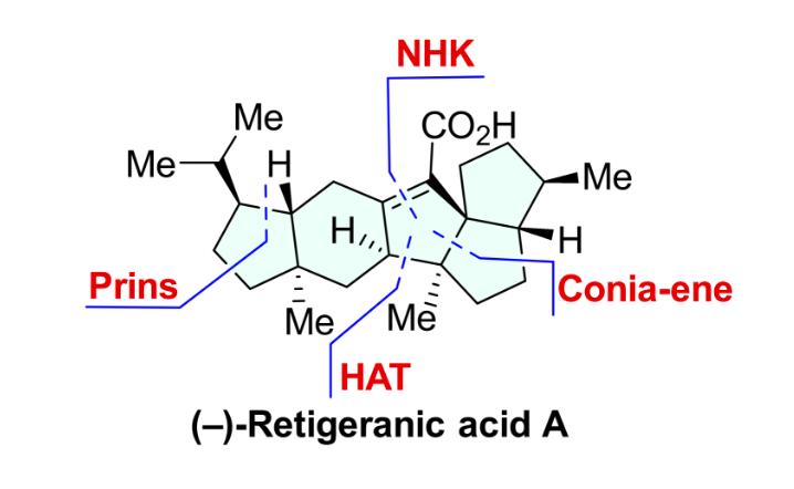 近日,蘭州大學(xué)陳小明團(tuán)隊(duì)和王少華團(tuán)隊(duì)合作,在天然產(chǎn)物合成領(lǐng)域取得新進(jìn)展,實(shí)現(xiàn)了(?)-Retigeranic acid A的不對(duì)稱全合成。該合成的主要特征包括:(1)Pt-催化enolyne Coni...